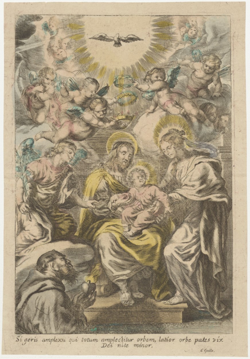 Kroning van Christus met Maria en Christuskind, ingekleurd