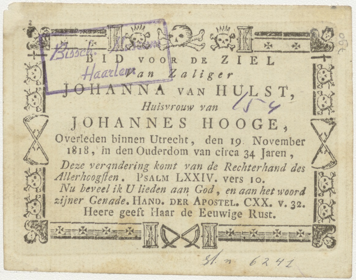 Marteling van Christus, kz. Bid voor ziel Van Hulst-Hooge (+1818);Utrecht;
