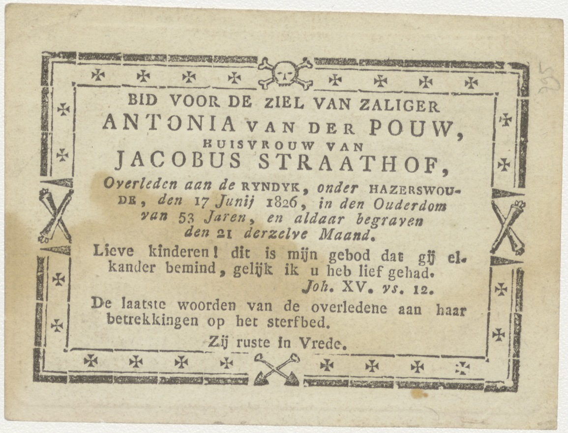Maria met Christuskind en Jozef, kz. Bid voor ziel Van der Pouw-Straathof (+1826);Rijndijk onder Hazerswoude;
