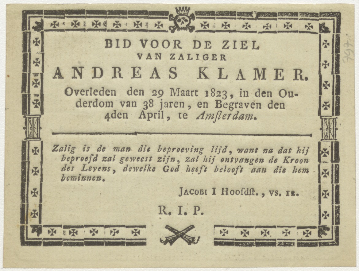 Maria met Christuskind, kz. Bid voor ziel Klamer (+1823);Amsterdam;