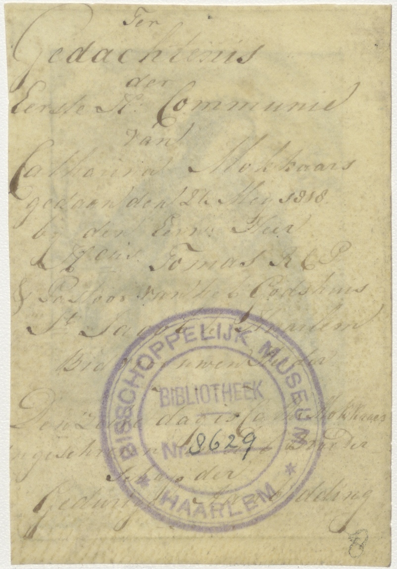 H. Catharina, kz. H. Communie Mokkaars;1818;door pastoor Thomas;gasthuis St. Jacob te Haarlem;
