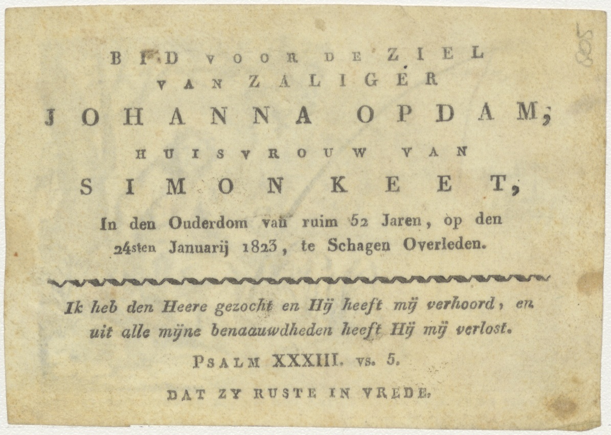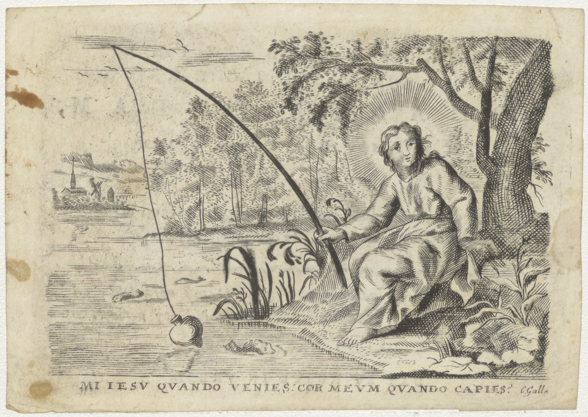 Christuskind aan het vissen, kz. Bid voor ziel Opdam-Keet (+1823);Schagen;