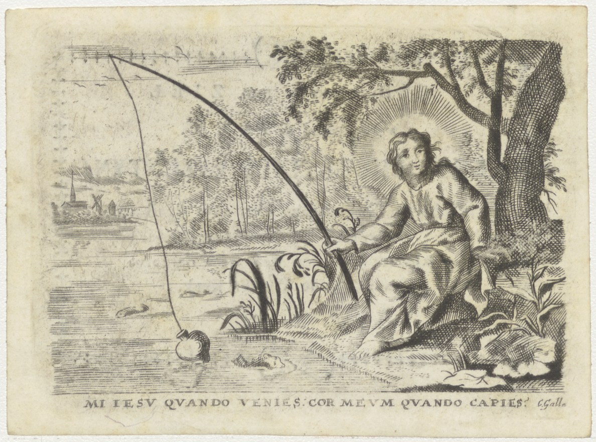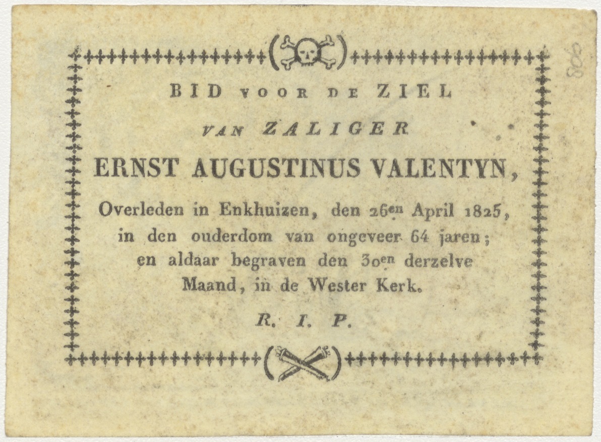 Christuskind aan het vissen, kz. Bid voor ziel Valentijn (+1825);Enkhuizen;