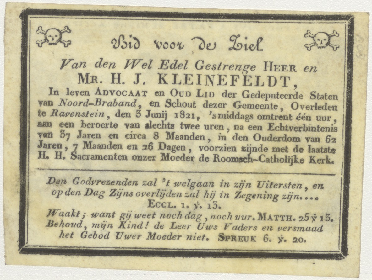 Terugkeer van de verloren zoon (Luc.15), kz. Bid voor ziel Kleinegeldt (+1821);Revenstein;