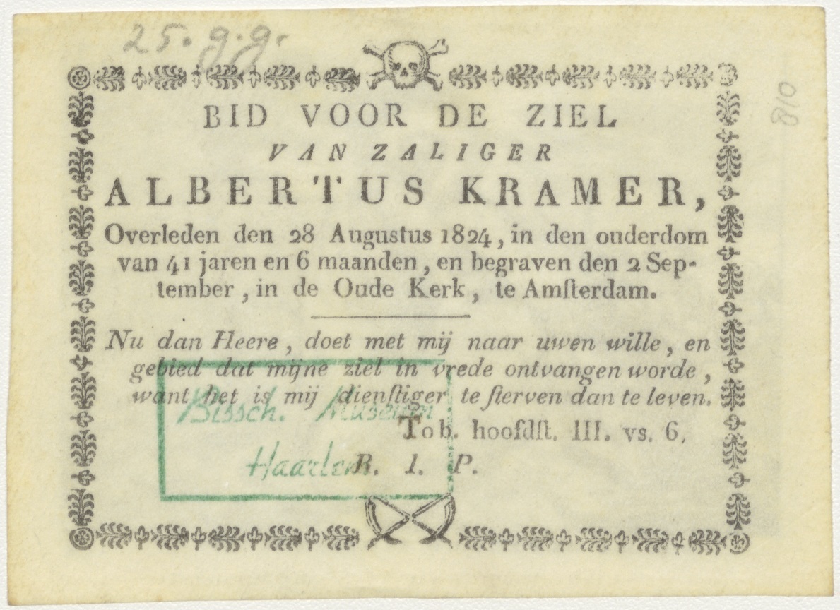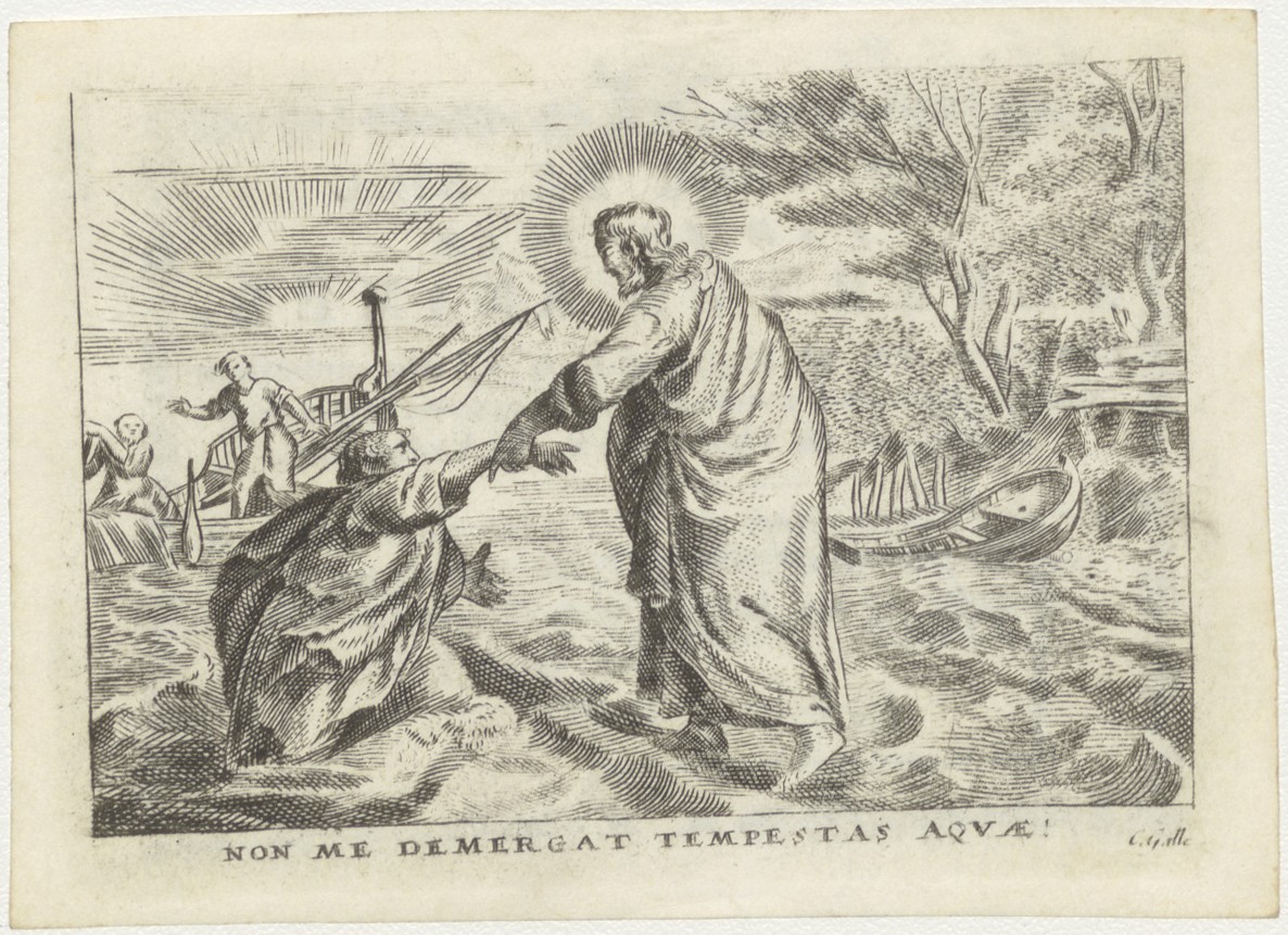 Petrus wordt door Christus uit het meer van Galilea gered, kz. Bid voor ziel Kramer (+1824);Amsterdam;