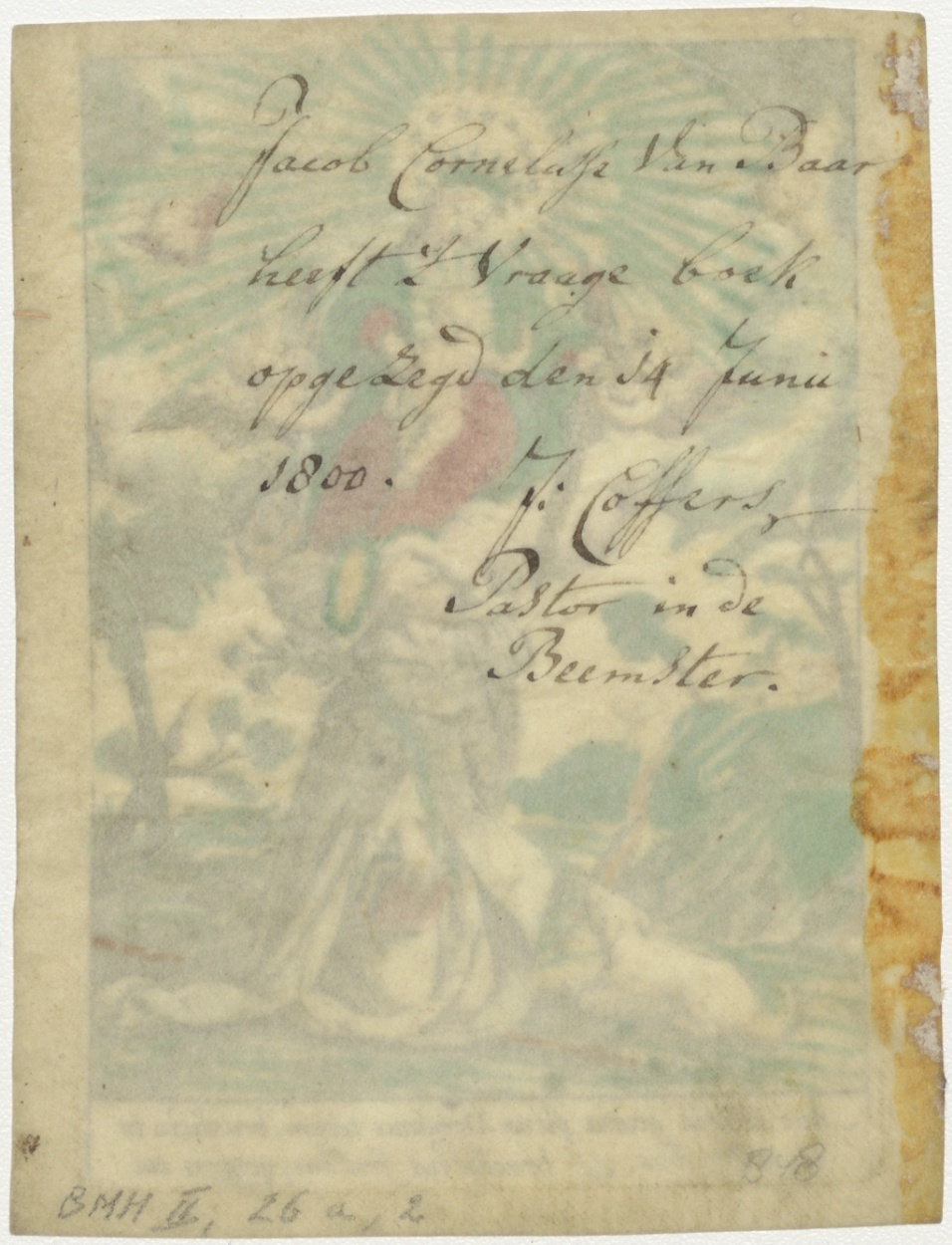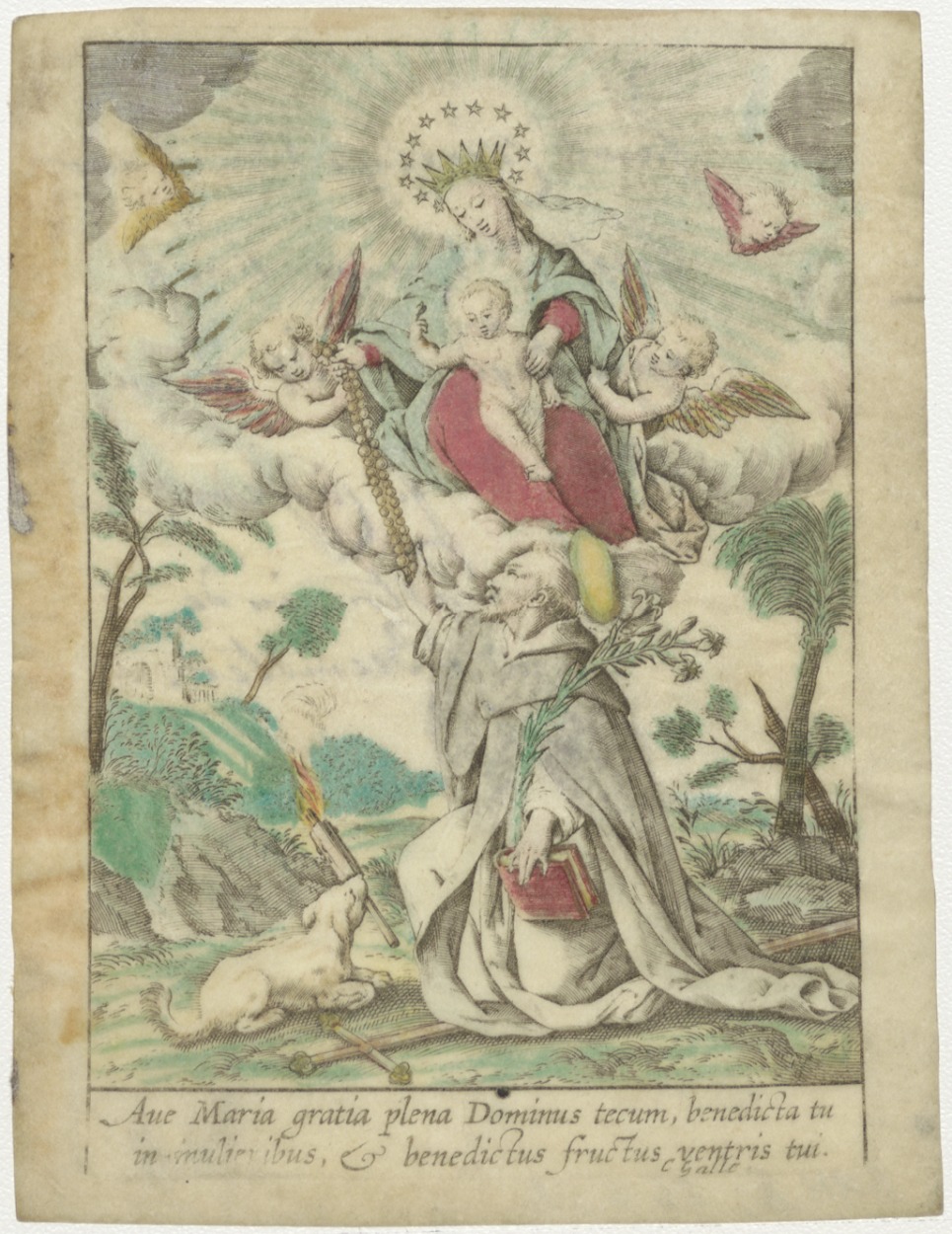 H. Dominicus met Maria en engelen, ingekleurd, kz. Beloning van Baar;1800;door pastor J. Coffers in de Beemster;