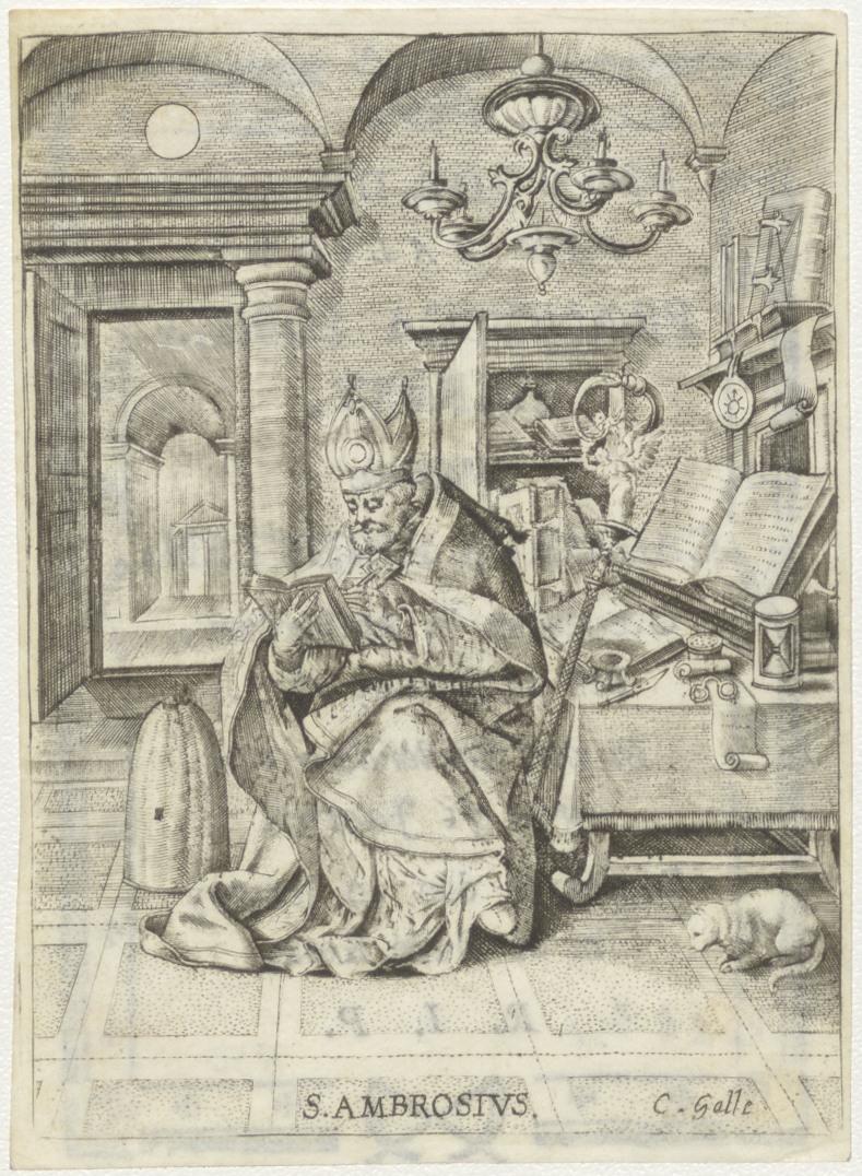 H. Ambrosius in studeervertrek, kz. Bid voor ziel Heitzen-Herbst (+1807);Amsterdam;