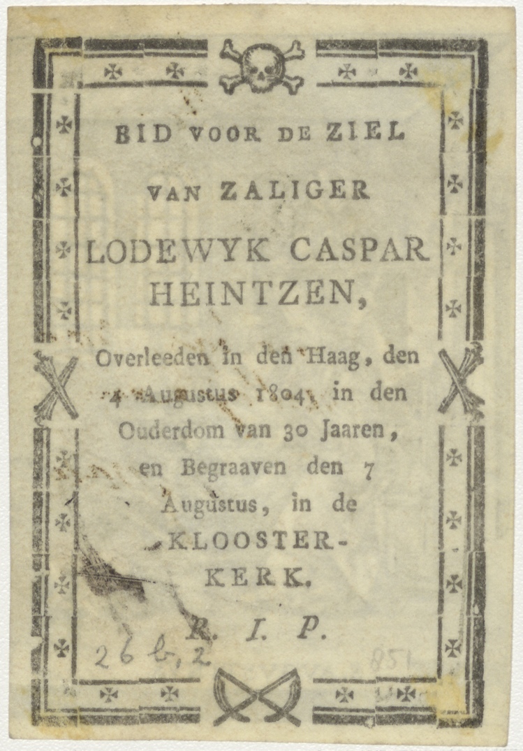 H. Augustinus in studeervertrek, kz. Bid voor ziel Heintzen (+1804);Kloosterkerk Den Haag;