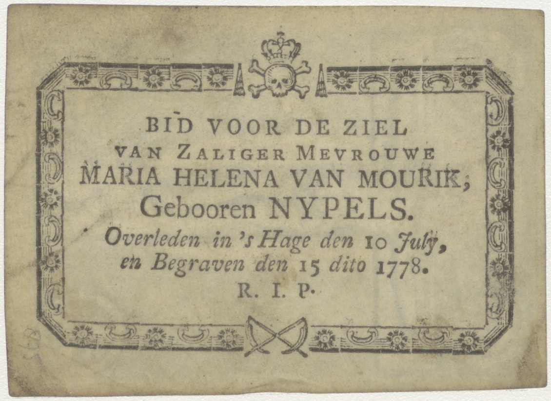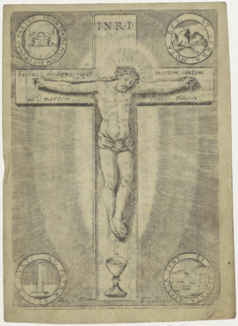 Christus aan het kruis, ingekleurd, kz. Bid voor ziel Nijpels-van Mourik (+1778);Den Haag;