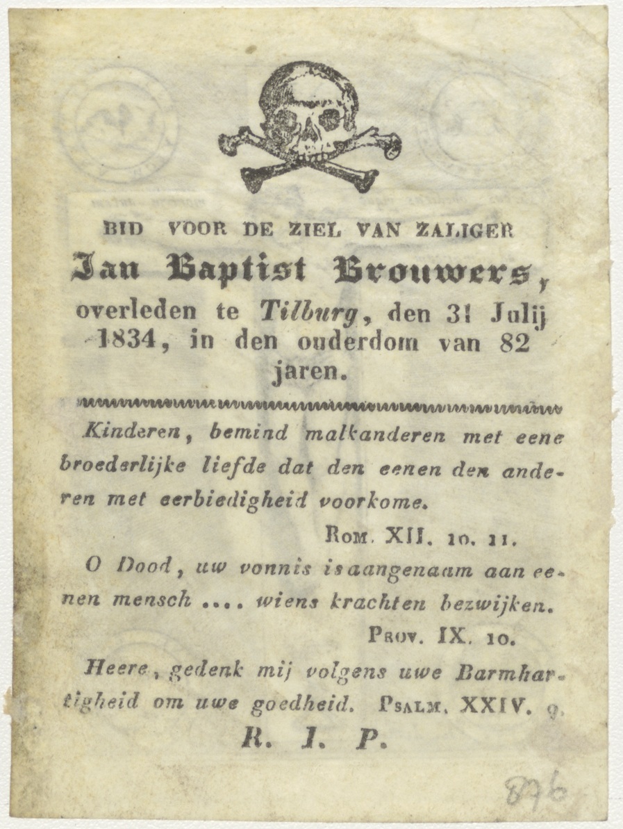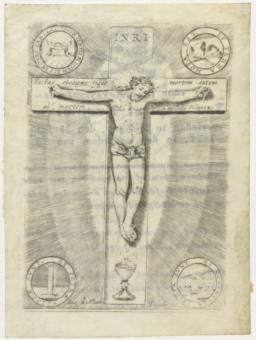 Christus aan het kruis, ingekleurd, kz. Bid voor ziel Brouwers (+1834);Tilburg;