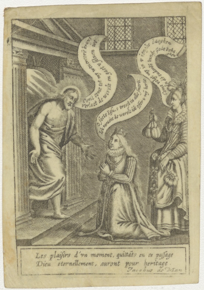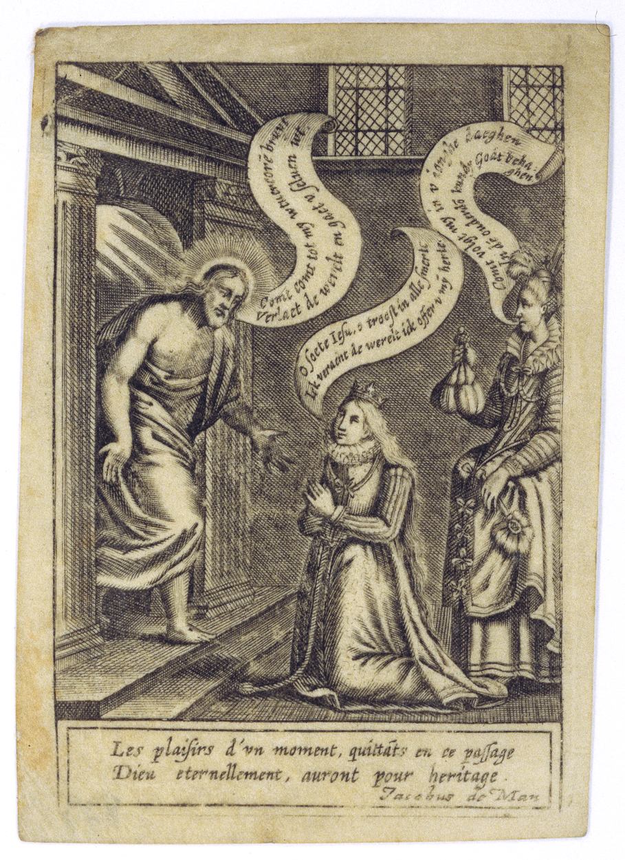 Twee vrouwen biddend voor Christus, ingekleurd, kz. Bid voor ziel Brouwers (+1834);Tilburg;