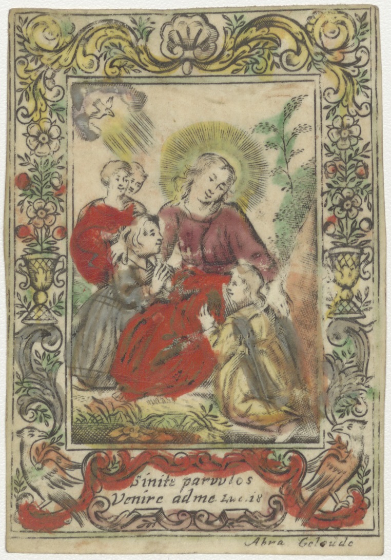 Laat de kinderen tot mij komen (Luc.18), Christus met kinderen, ingekleurd