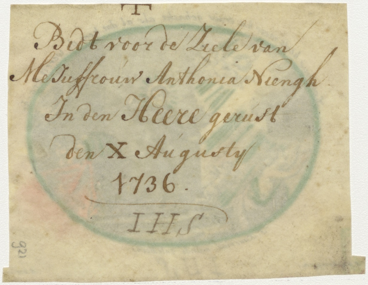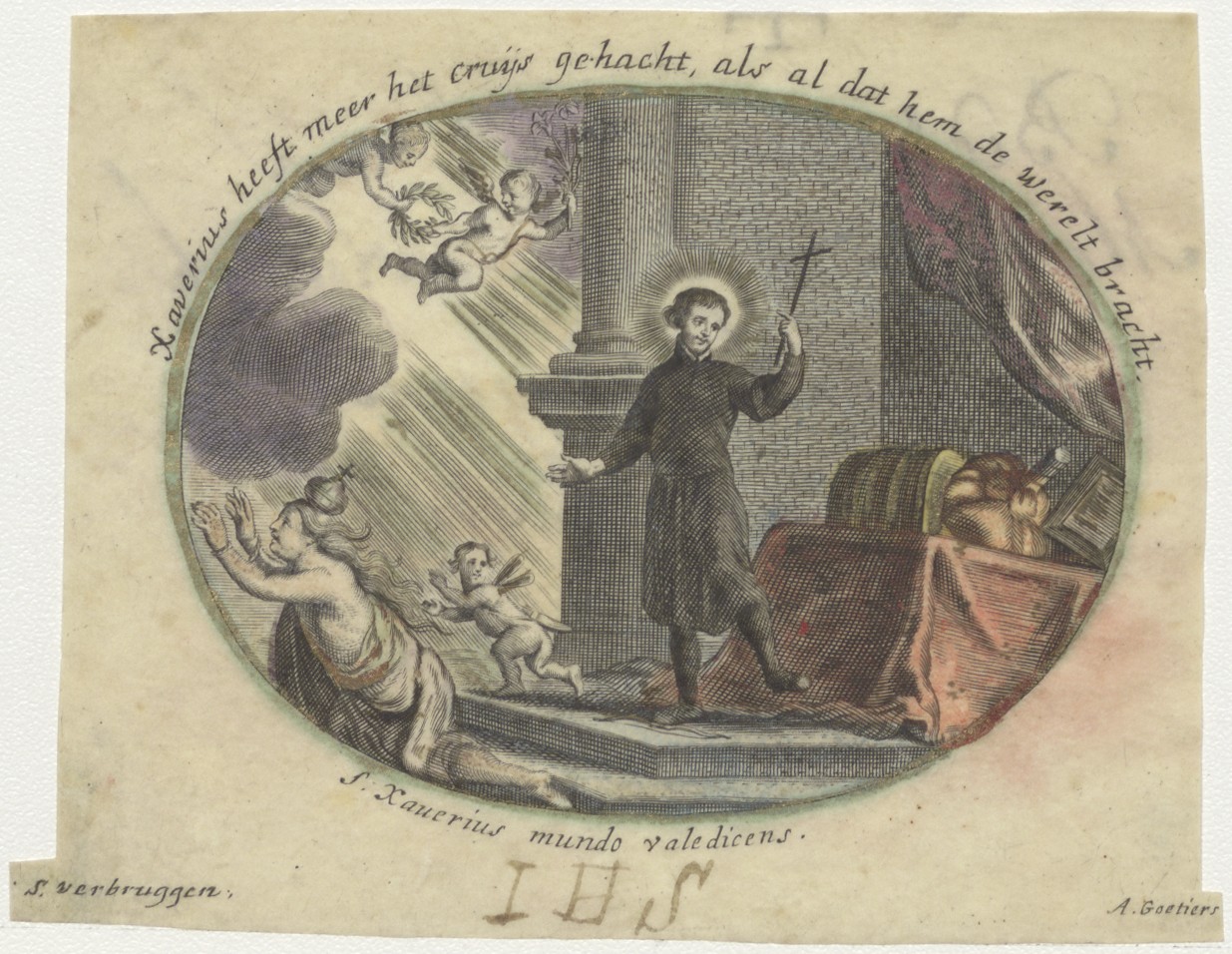 H. Xauerius, Xaverius, ingekleurd, kz. Bid voor ziel Niengh (+1736)
