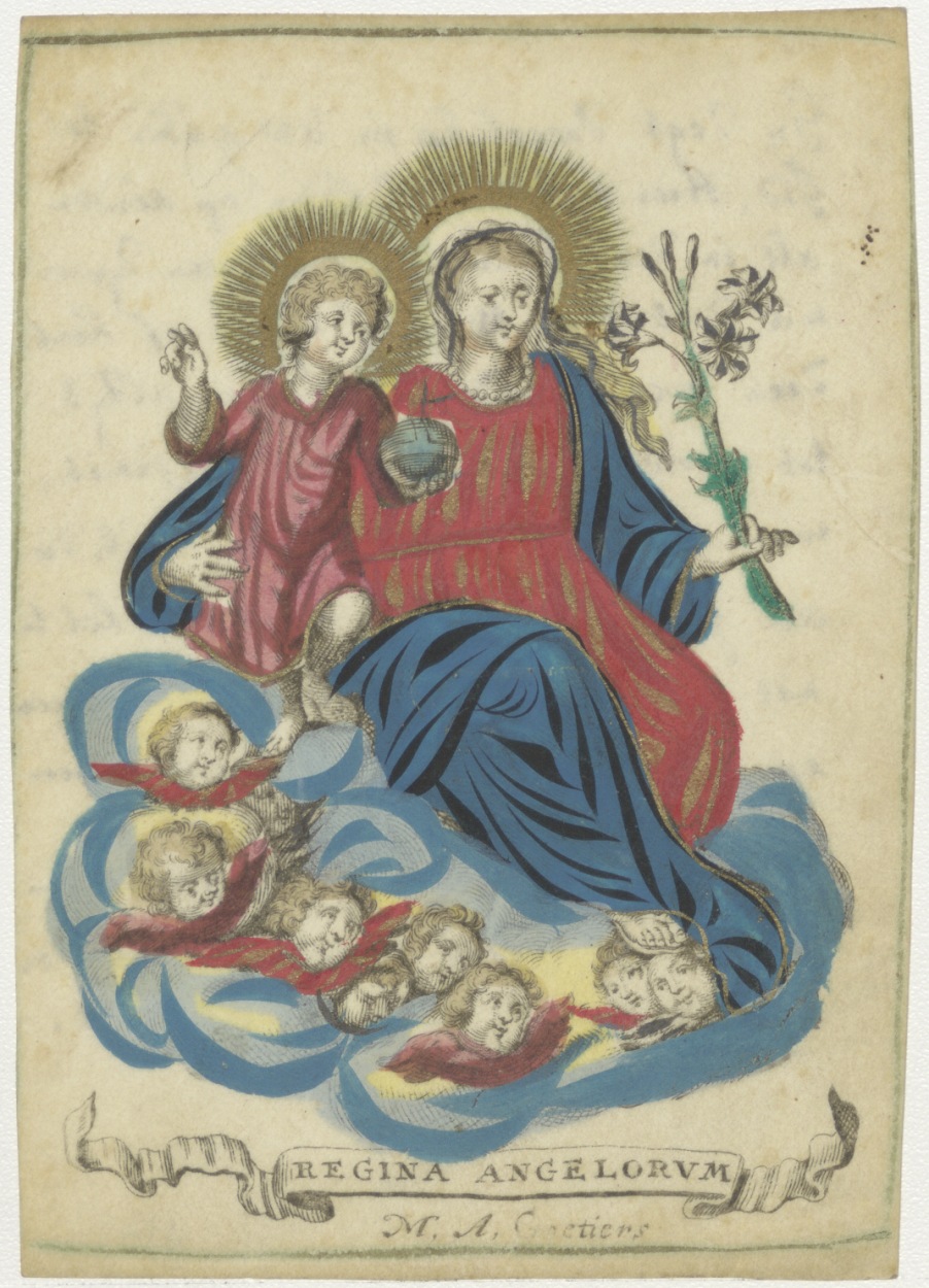 Maria van de engelen (Regina Angelorum), ingekleurd, kz. gebed Catrijn Verlem voor biechtvader G.H.H.