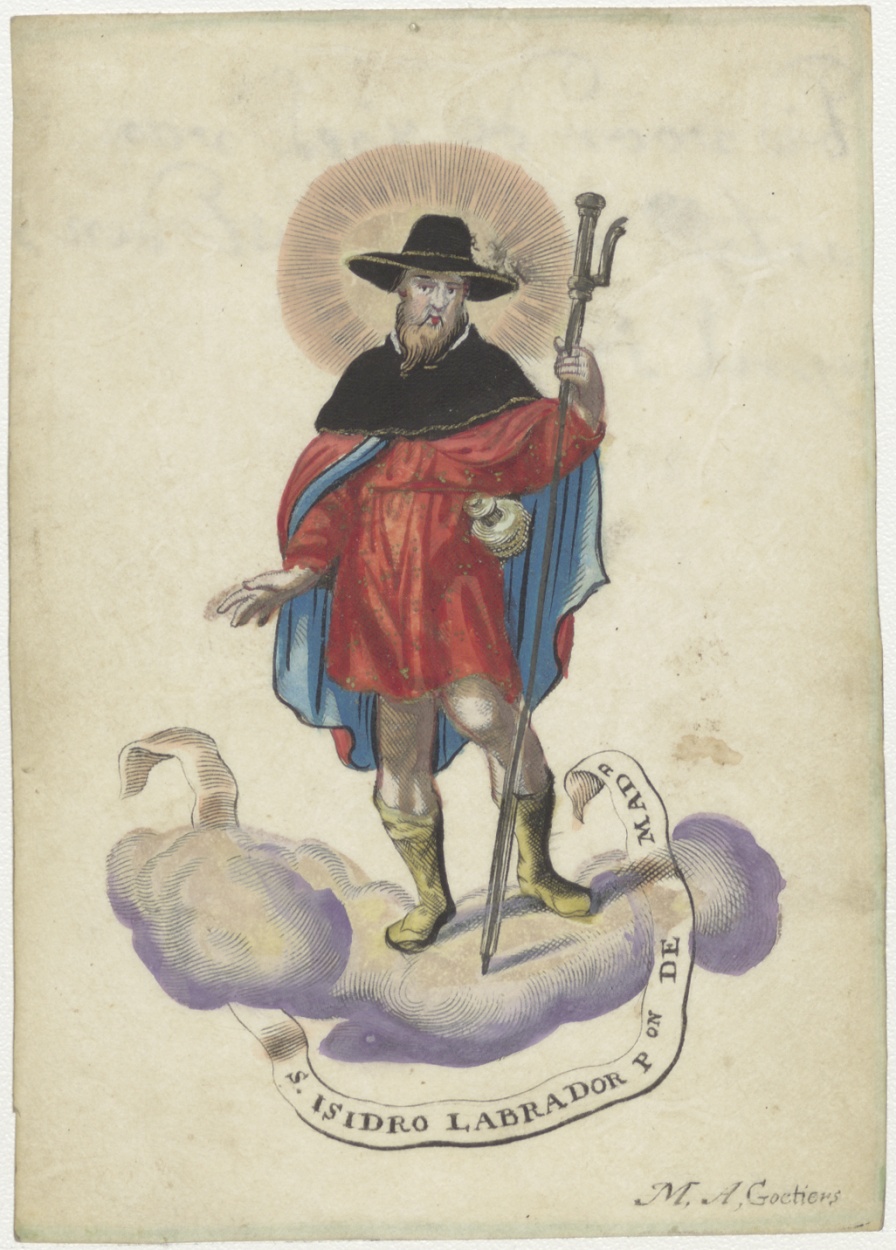 H. Isidro Labrador, ingekleurd, kz. Bid voor ziel Antje Roos (+1734)