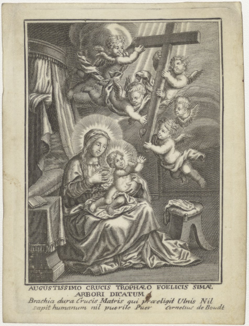 Maria met Christuskind, engelen (putti) die kruis vasthouden