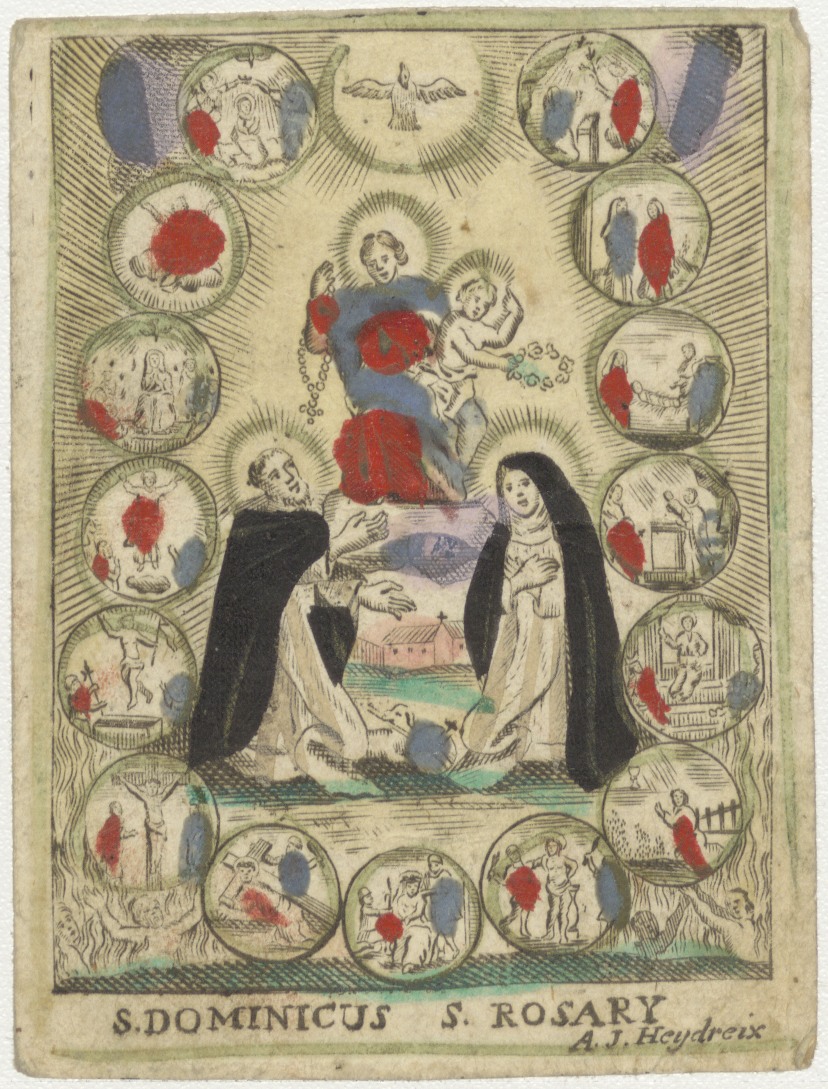 H. Dominicus, H. Rosary, Maria met rozenkrans, ingekleurd