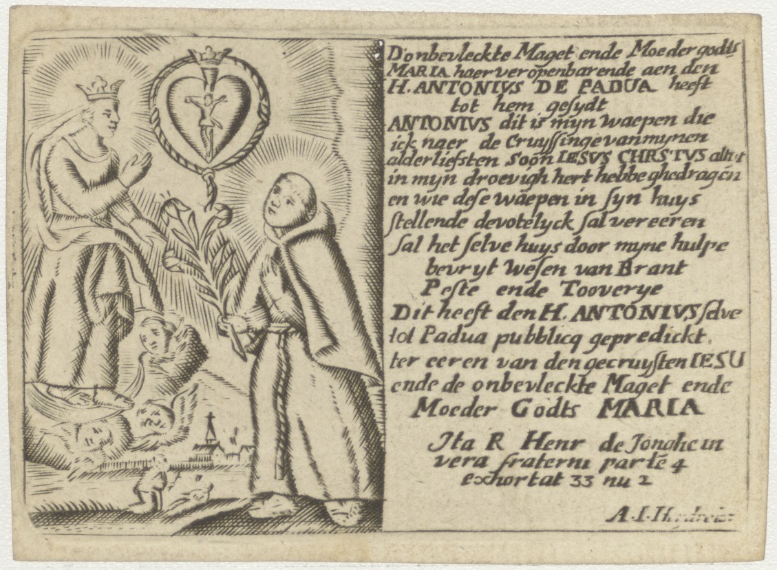 H. Antonius van Padua, met gebed en Maria