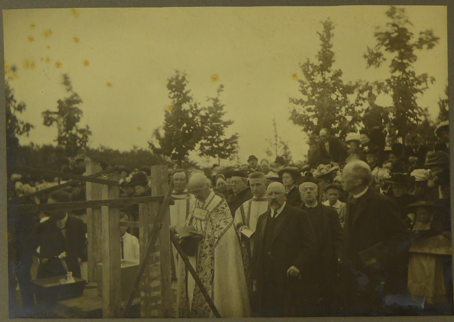Eerste steenlegging kapel te Heiloo door Mgr. Jacobus Joannes Graaf op 1 juli 1909