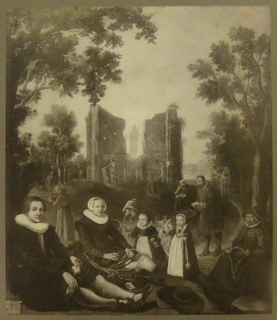 Familie bij de ruïne van de O.L.Vrouwekapel te Heiloo (foto van BMH s473b)