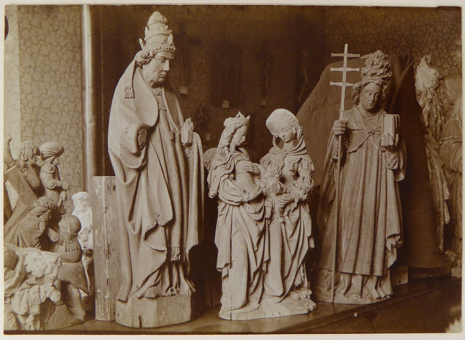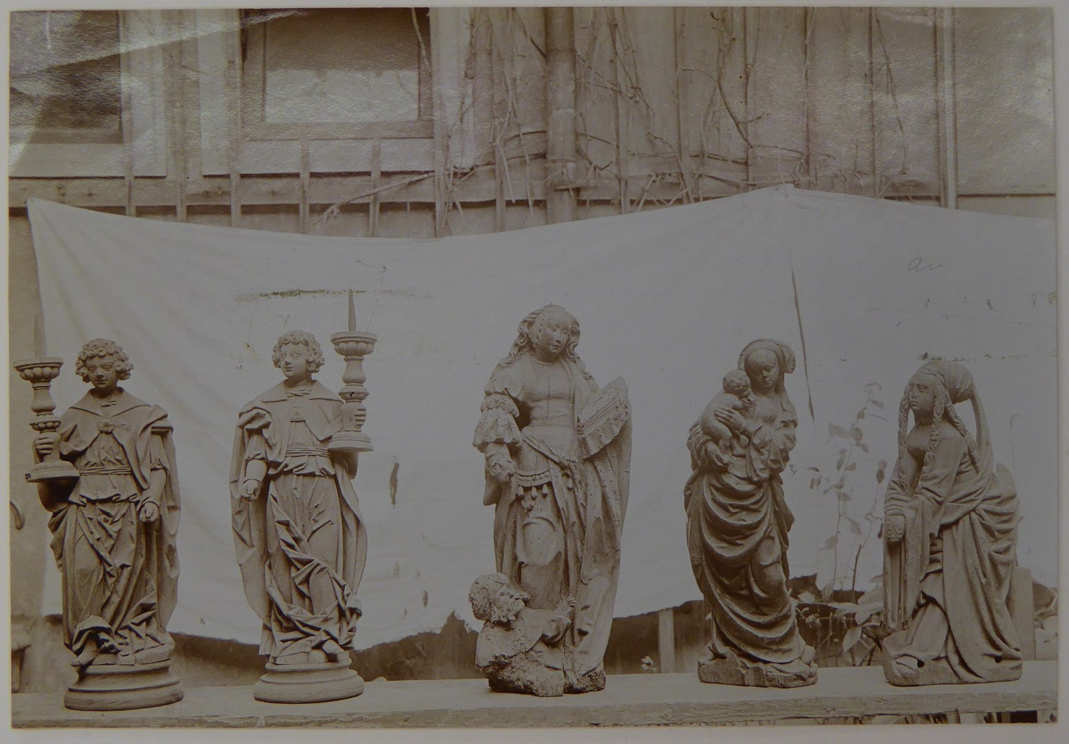 Opstelling van afgietsels(?) van ABM-beelden in het Bisschoppelijk Museum Haarlem (7 stuks)