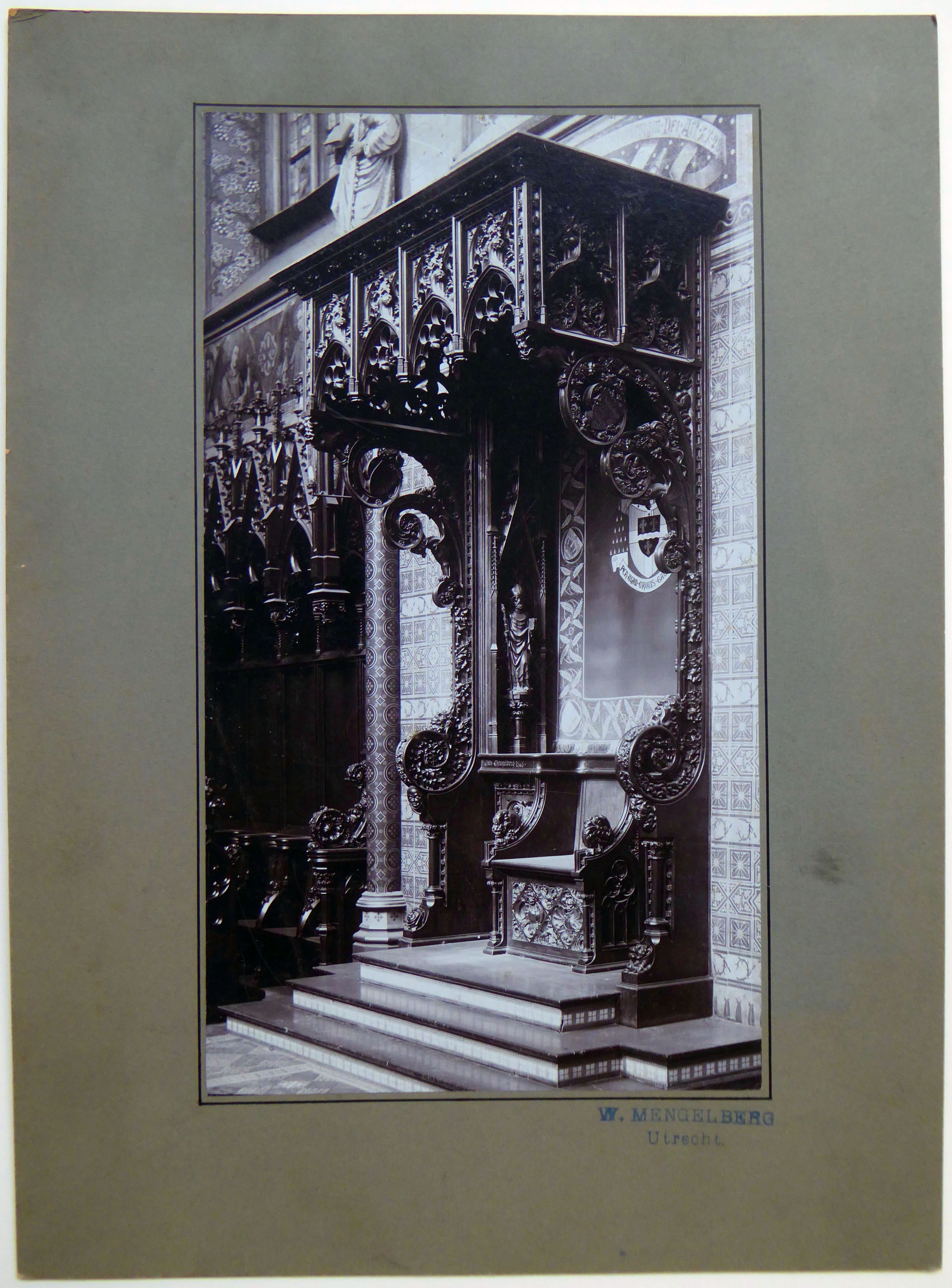 Bisschopstroon van de Sint-Catharinakathedraal Utrecht met het troonkleed van aartsbisschop Andreas Ignatius Schaepman
