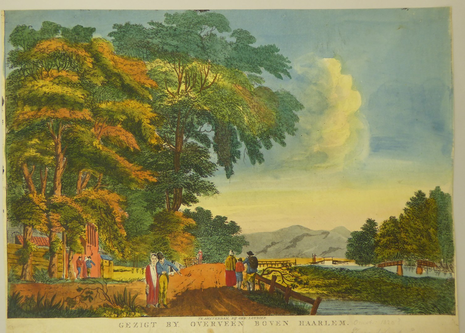 Overveen, gezicht op het dorp, ingekleurd
