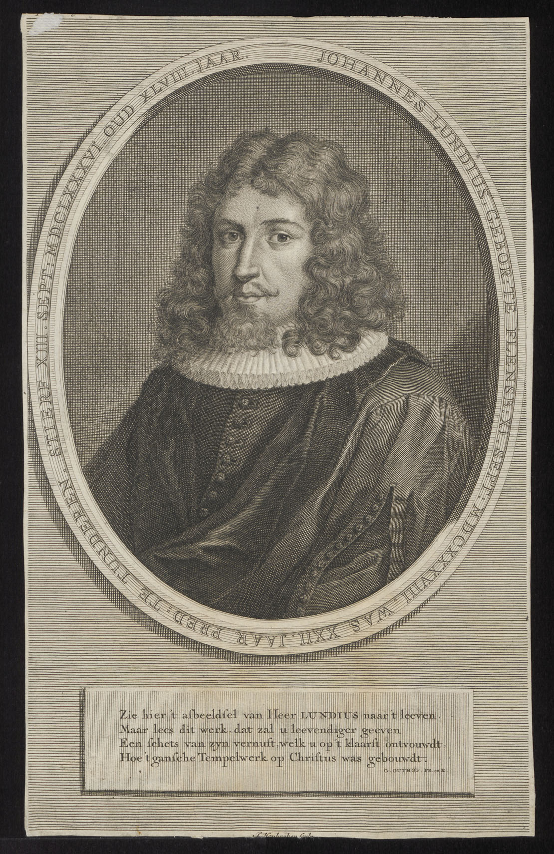 Portret van Johannes Lundius (1638-1686), hervormd predikant te Tunderen geboren te Flensburg