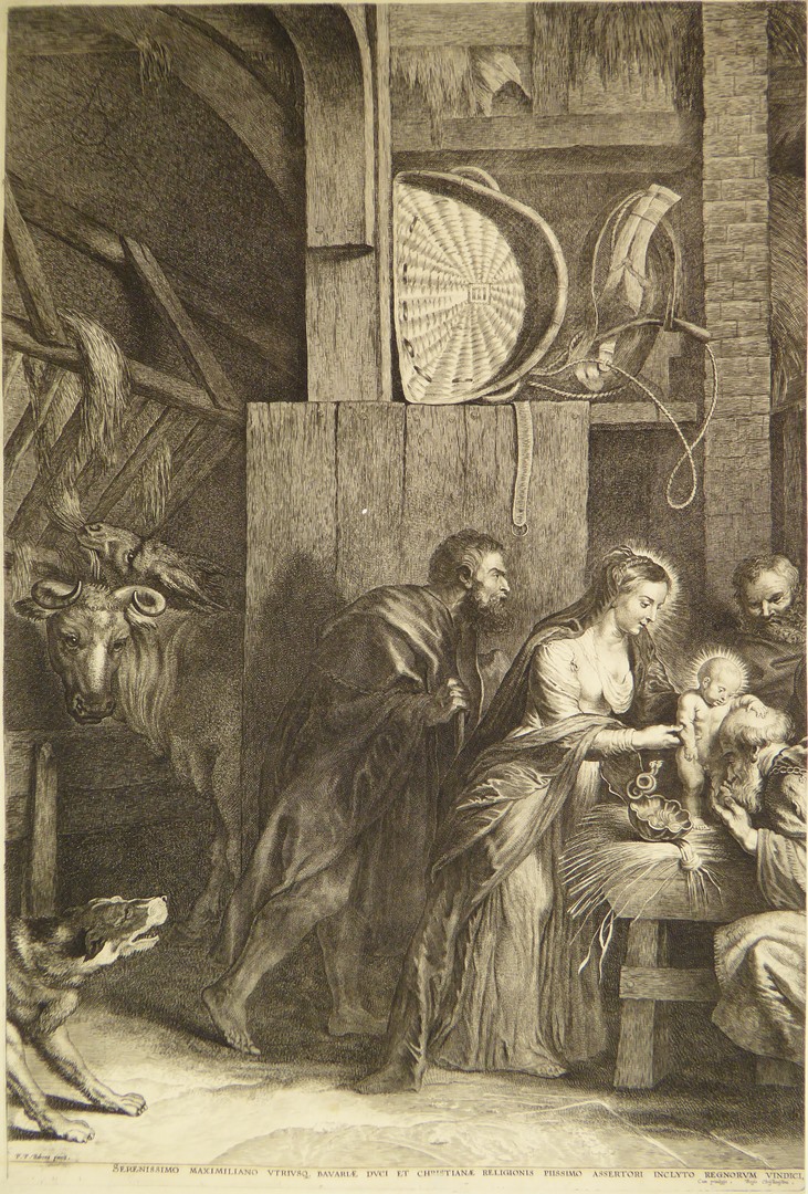 Deel van een voorstelling, aanbidding der koningen