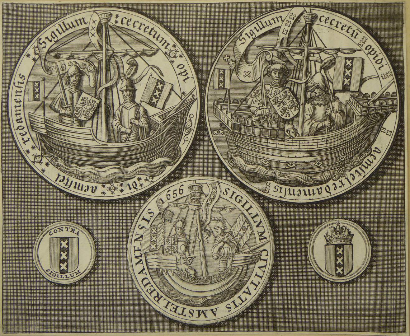Afbeelding van drie zegels van de stad Amsterdam