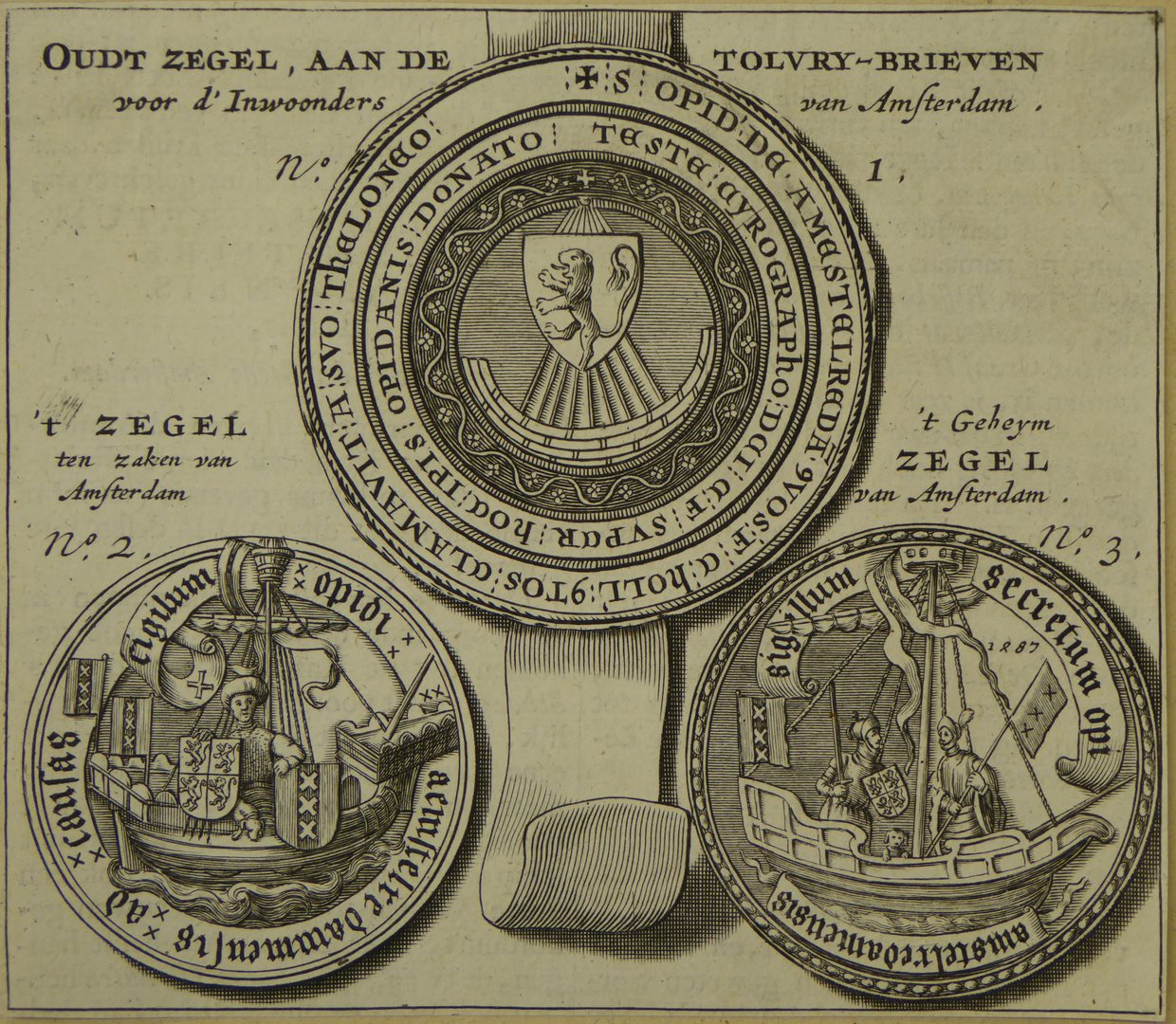 Afbeelding van drie zegels van de stad Amsterdam