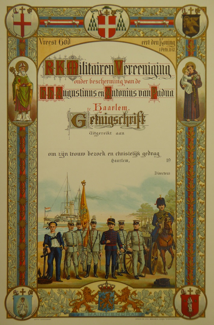 Getuigschrift van de R.K. Militairen Vereeniging te Haarlem
