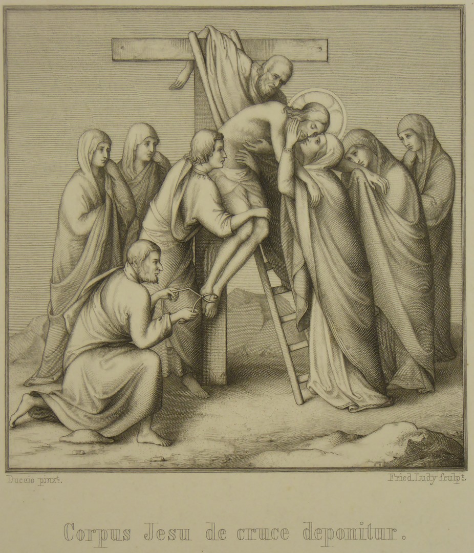 Het lichaam van Christus wordt van het kruis gehaald