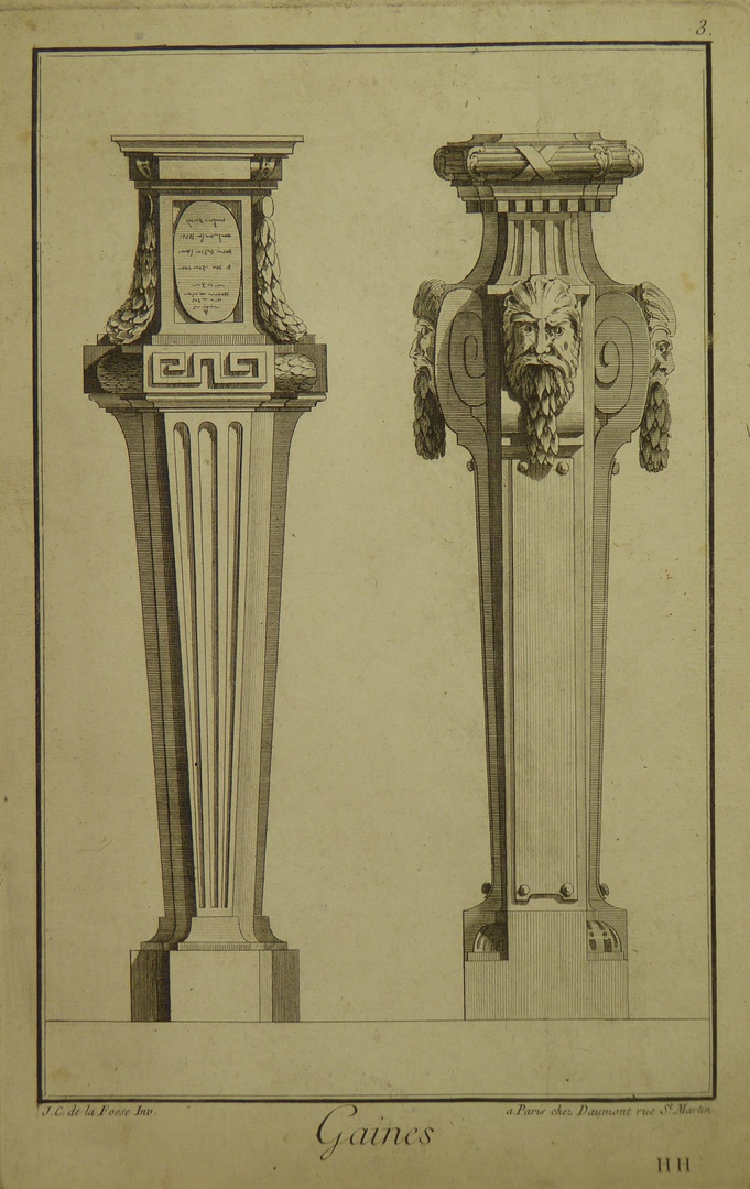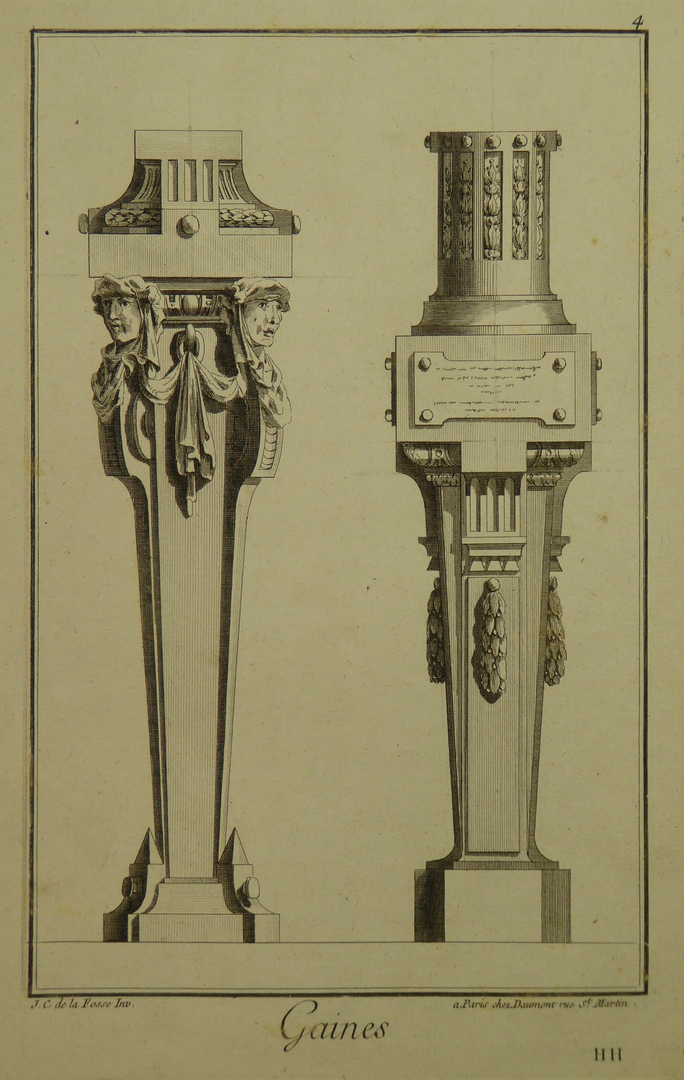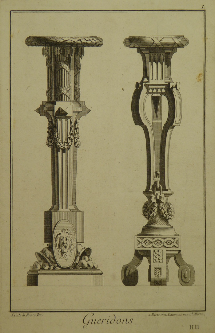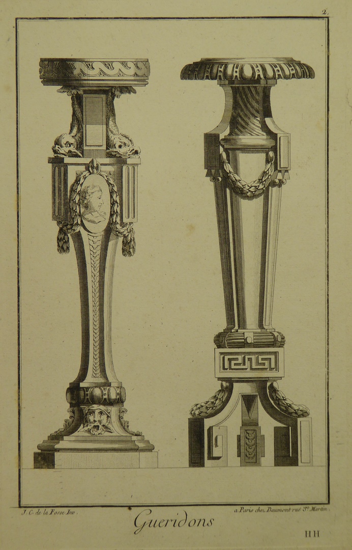 Ornamentprenten (serie): ontwerpen voor foudralen(?) en gueridons, profaan (4 exemplaren)