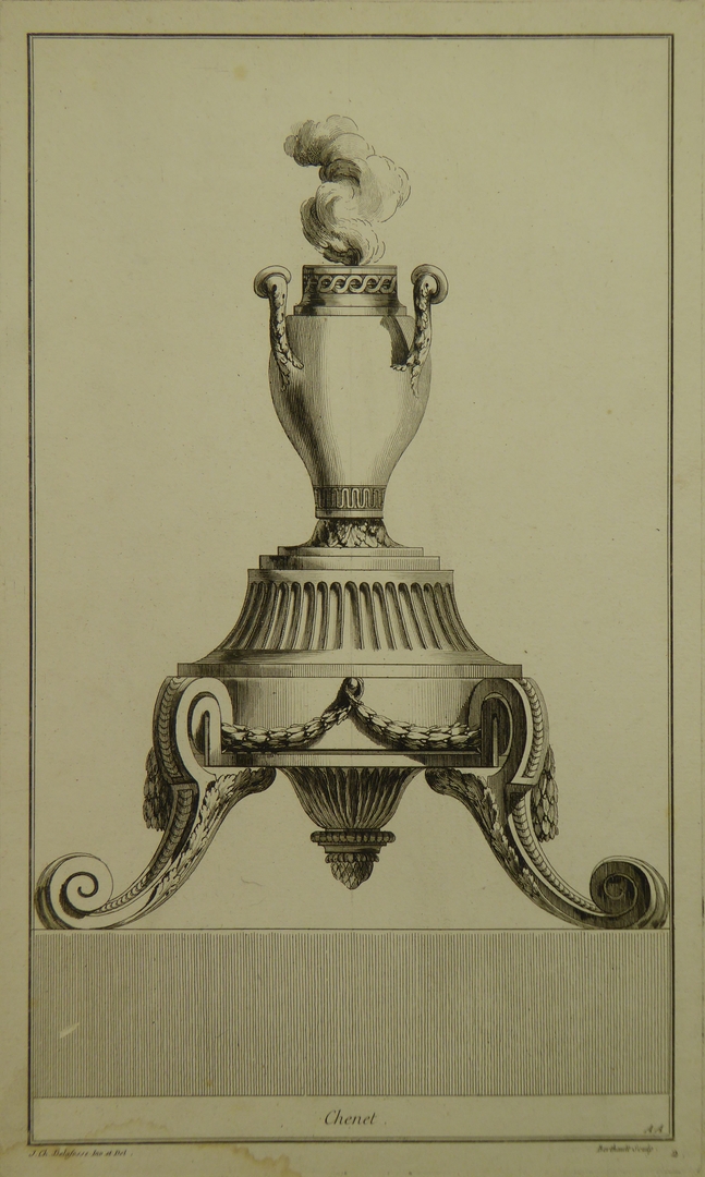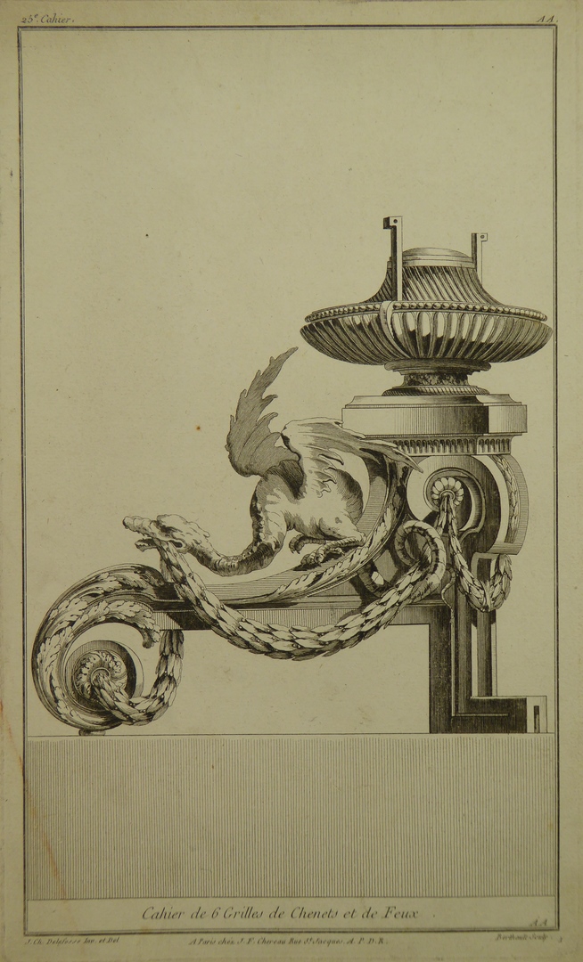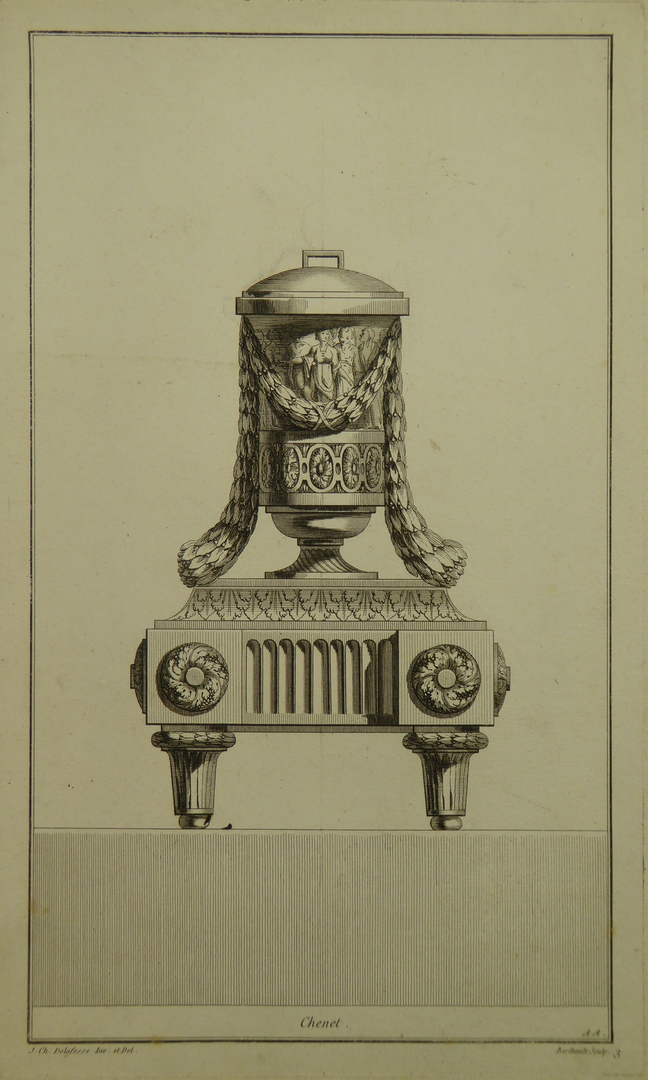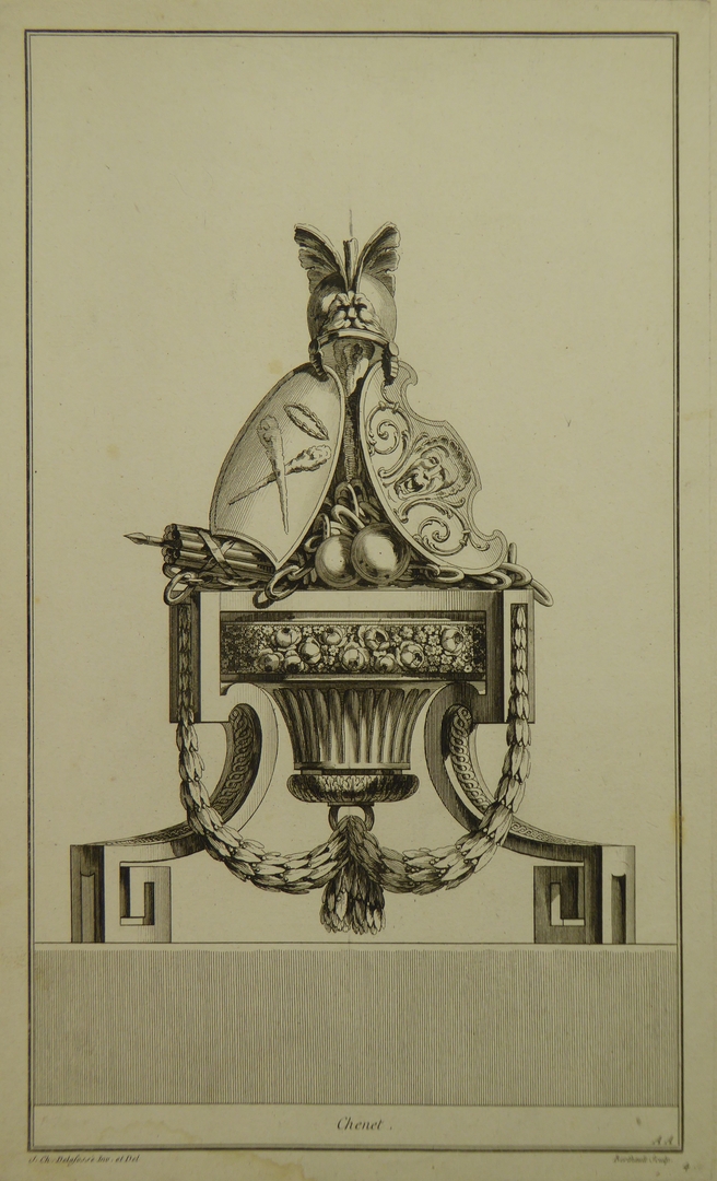 Ornamentprenten (serie): ontwerpen voor haardroosters en ijzers, profaan (6 exemplaren)