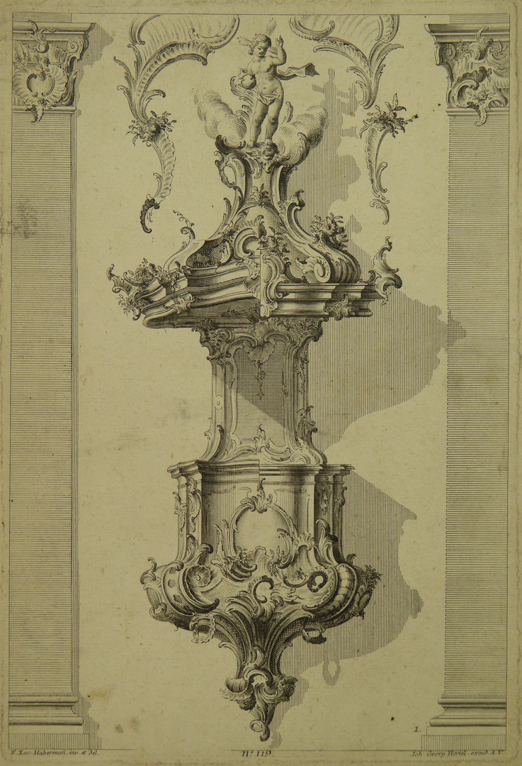 Ornamentprenten (serie): ontwerp voor een barokke preekstoel