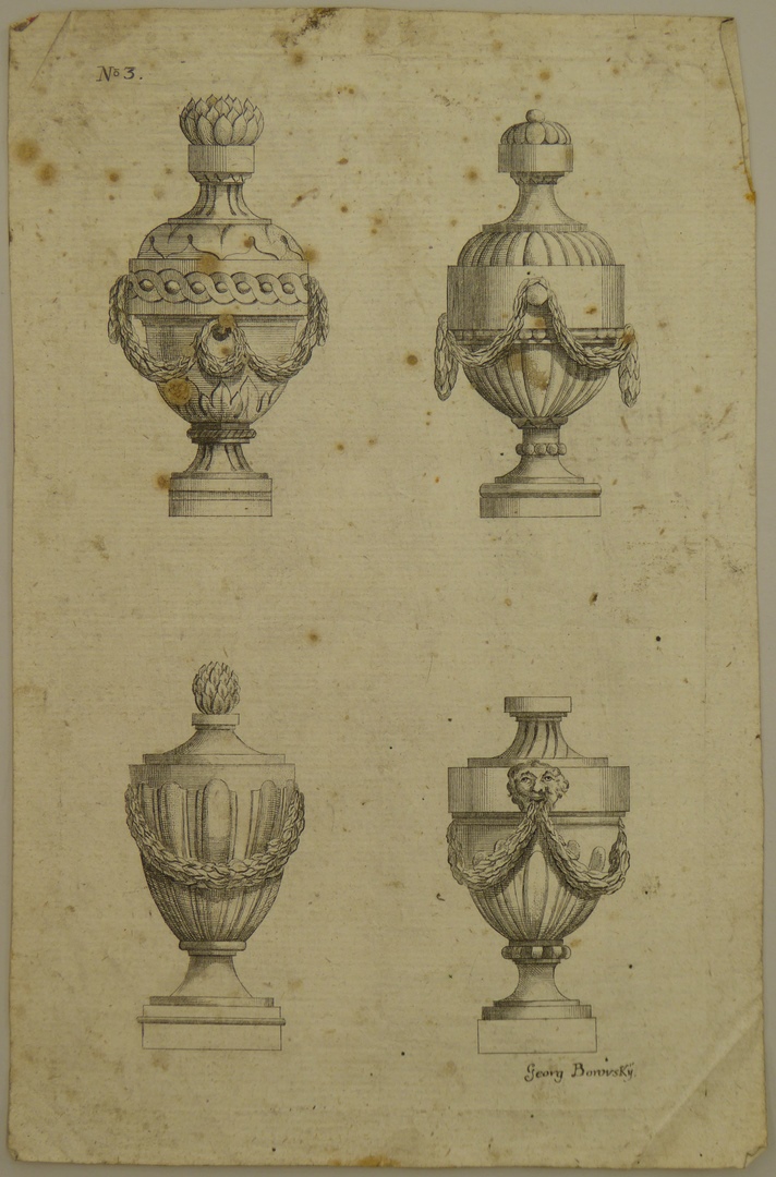 Ornamentprenten (serie): ontwerpen voor vazen, profaan (3 exemplaren)