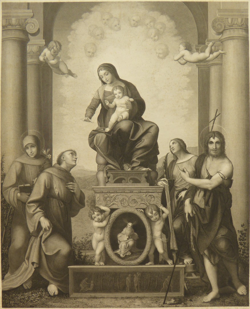 Maria met heiligen, St. Franciscus, Johannes de Doper, Catharina van Alexandrië e.a.