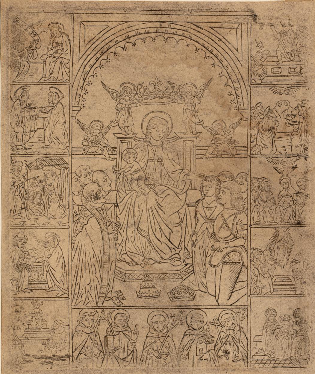 Tronende Maria, rondom scènes uit het leven van Maria en Jezus