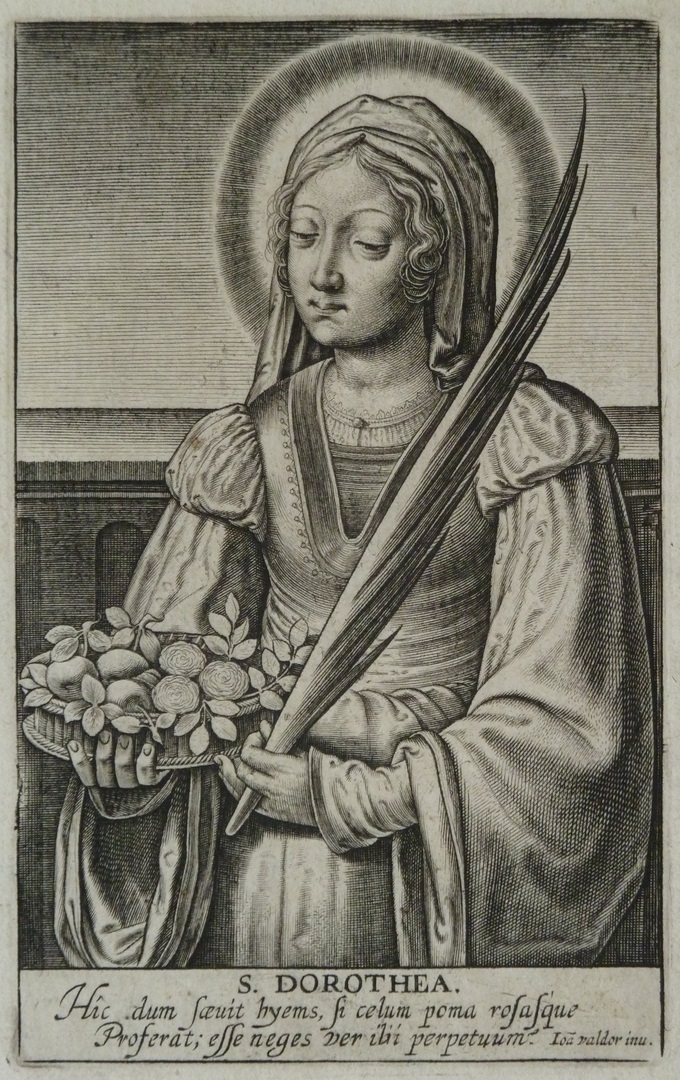 H. Dorothea, als halffiguur voorgesteld met in haar rechterhand een mand vruchten en rozen