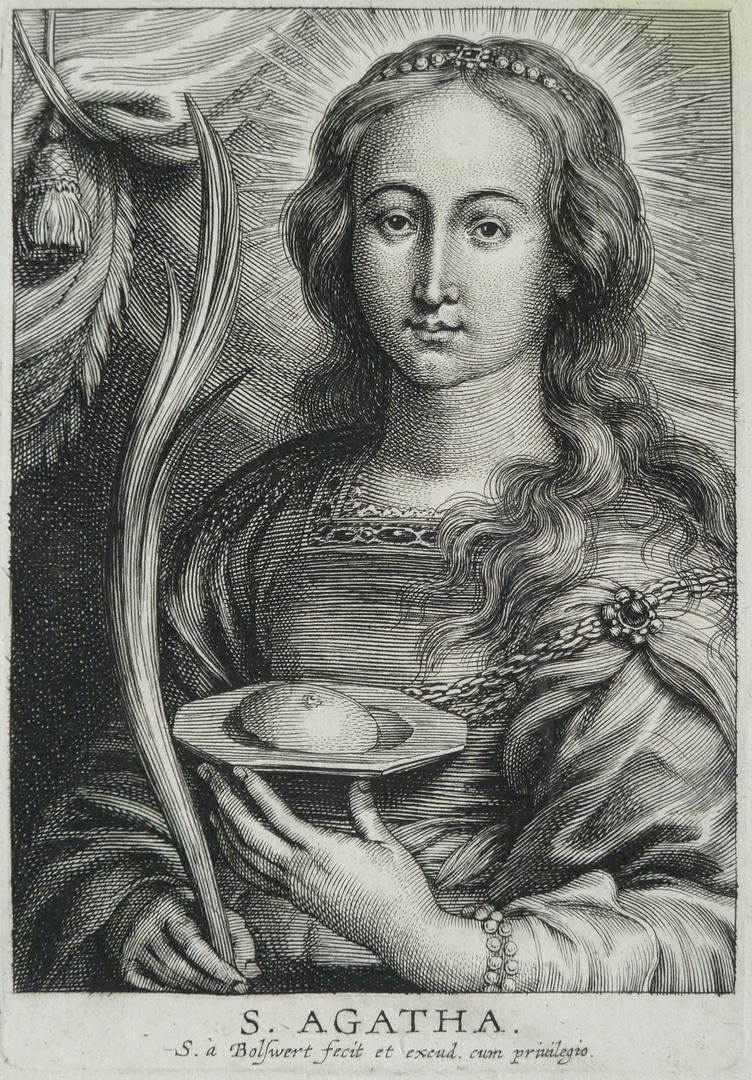 Serie: H. Agatha met schoteltje waarop een afgesneden borst en palmtak