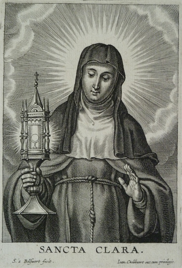 H. Clara, halffigurig van voren weergegeven met in haar rechterhand monstrans met hostie