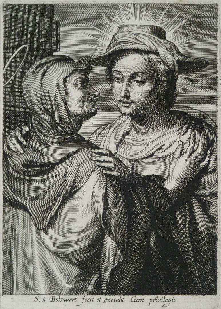 Ontmoeting van Maria en Elisabeth, als halffiguur weergegeven, visitatie