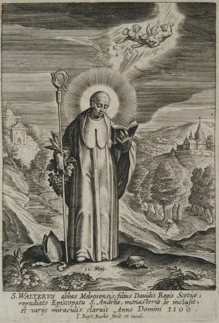 St. Walter, zoon van de koning van Schotland, in een landschap afgebeeld