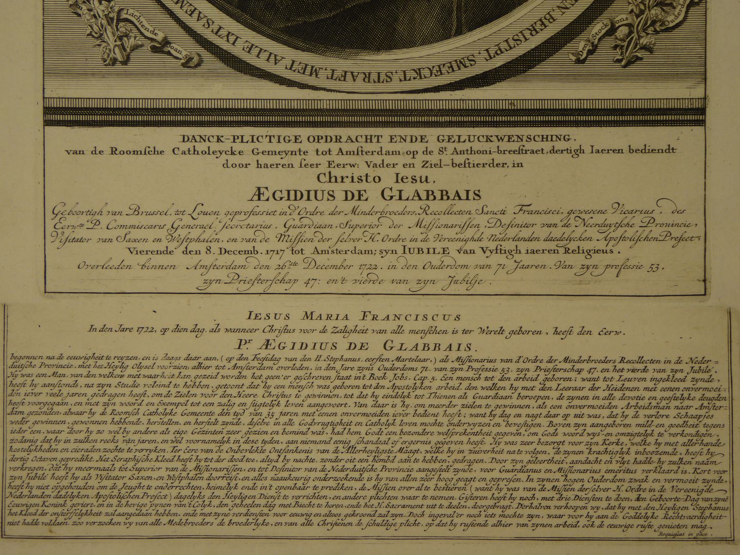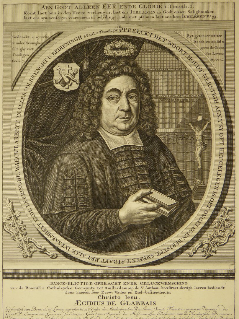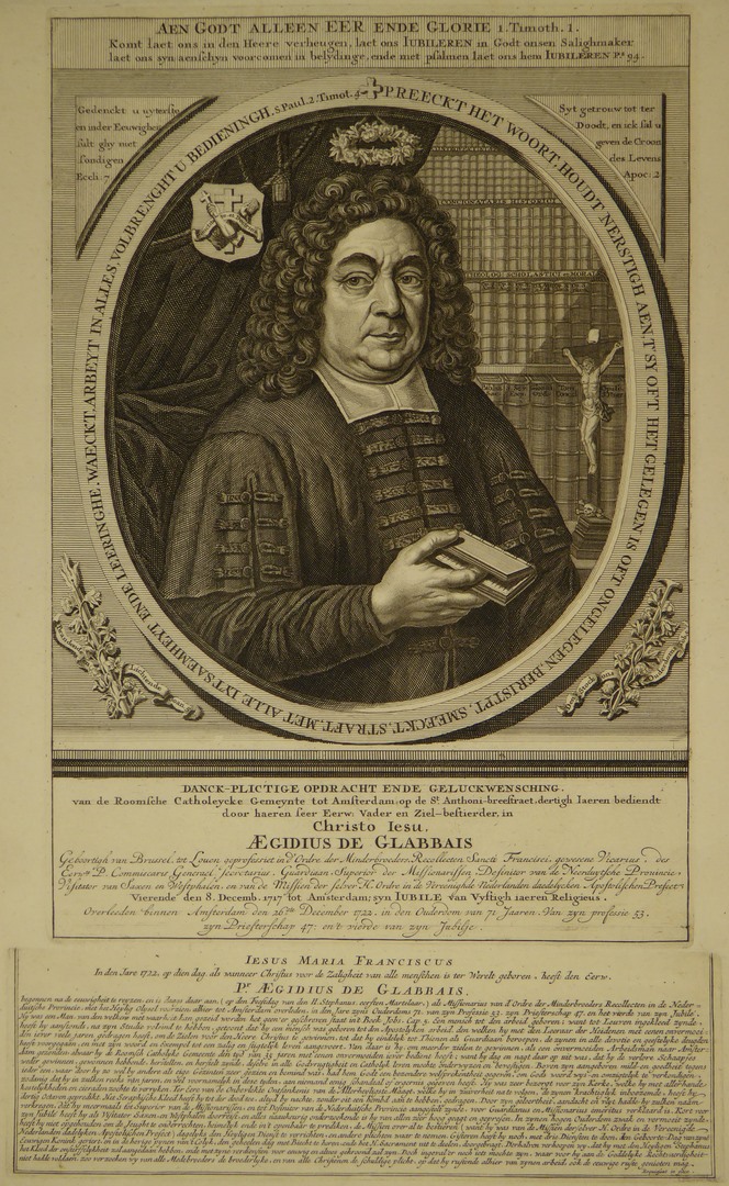 Portret van Aeg. de Glabbais, R.K. pastoor te Amsterdam, t.g.v. 50 jarig kloosterjubileum in 1717