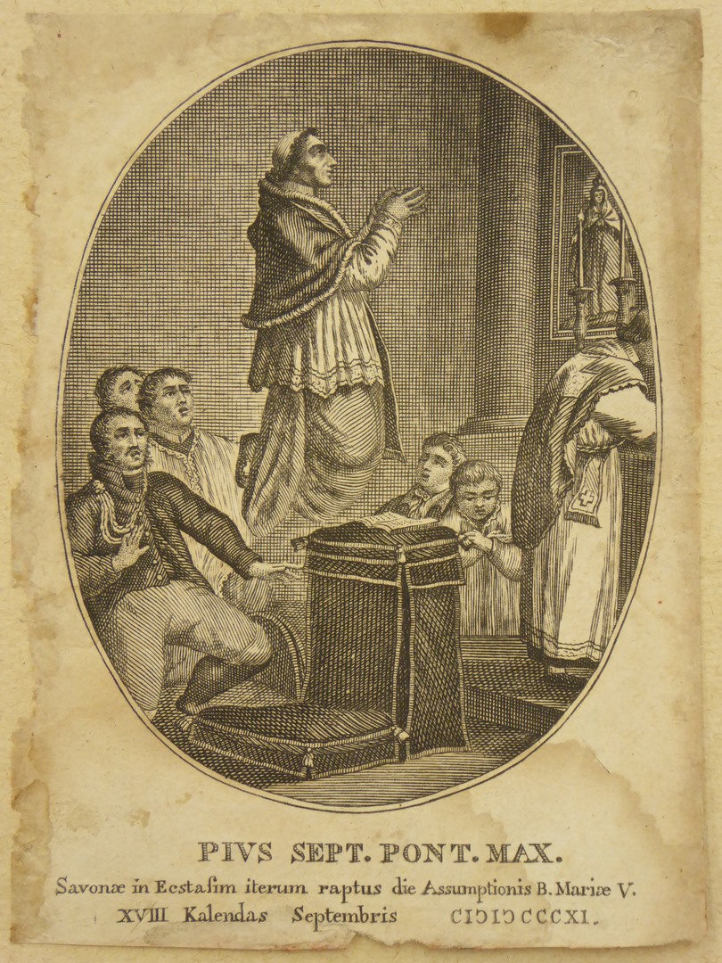 Voorstelling over het wonder van Sarona, paus Pius VII in extase voor Maria