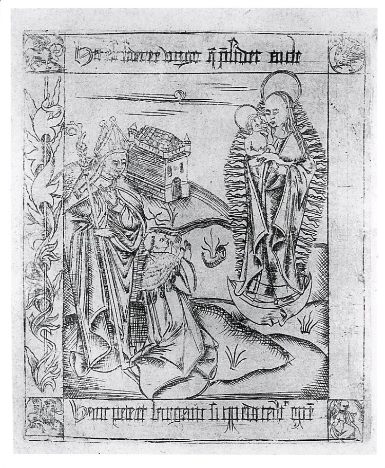 Maria met kind als apocalyptische vrouw, met geknielde kanunnik en H. Augustinus