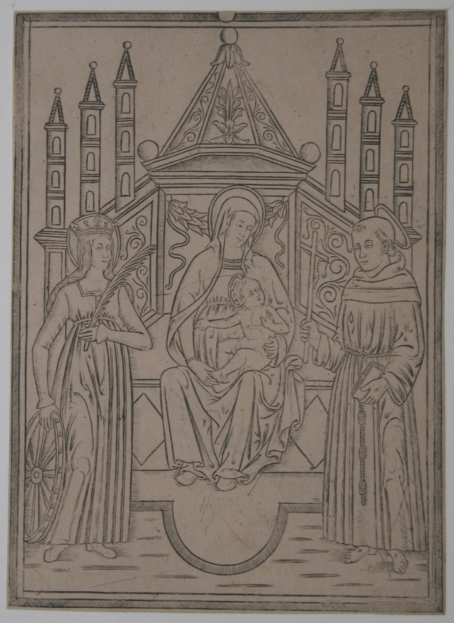Getroonde Maria met kind met H. Catharina van Alexandrië en H. Franciscus