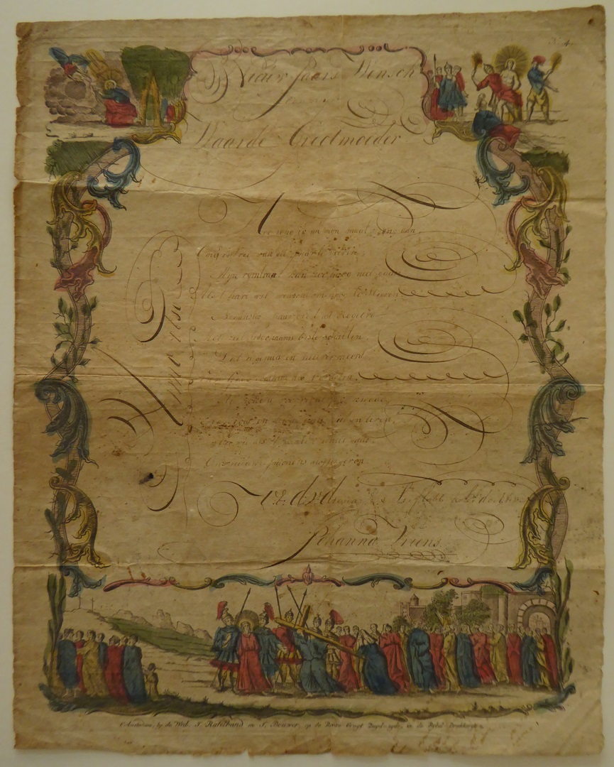 Voorstellingen met betrekking tot het lijden van Christus, nieuwjaarswens Johanna Vriens, ingekleurd