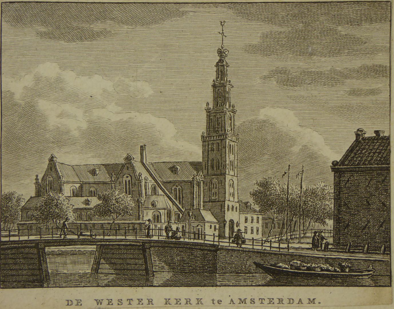 Amsterdam, Westerkerk, voor de kerk een grachtje met bootjes